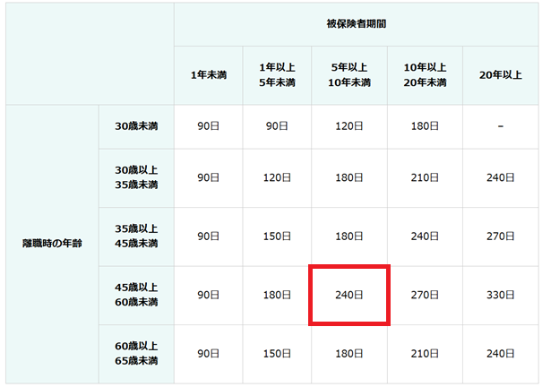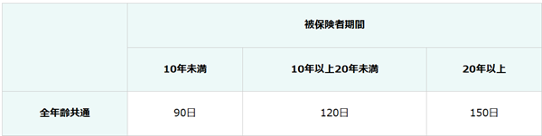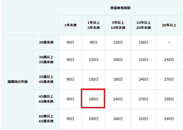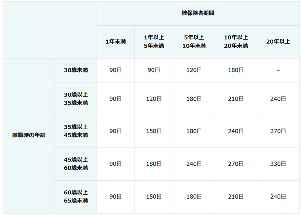 解雇の場合の失業保険は以下の通り
