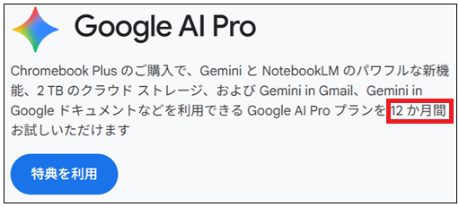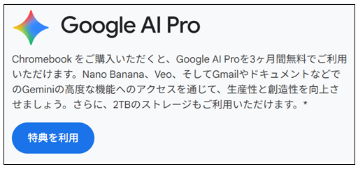 Chromebookの特典が!